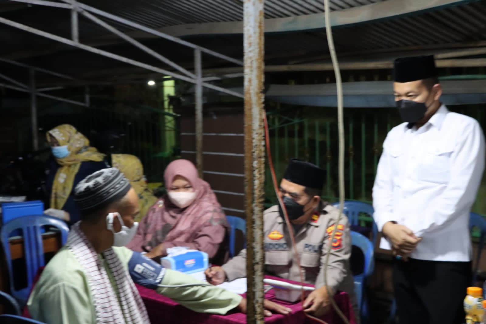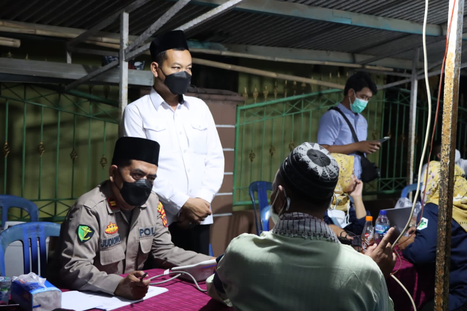 Majalengka – medialidikkrimsus-ri.net Kasat Narkoba Polres Majalengka Polda Jabar AKP Udiyanto meninjau dan memberikan motivasi kepada warga masyarakat yang sedang melaksanakan Vaksinasi lanjutan (Booster) di Halaman Masjid Al – Hidayah Desa Palasah Kecamatan Palasah Kabupaten Majalengka,Senin (4/4/2022) malam.