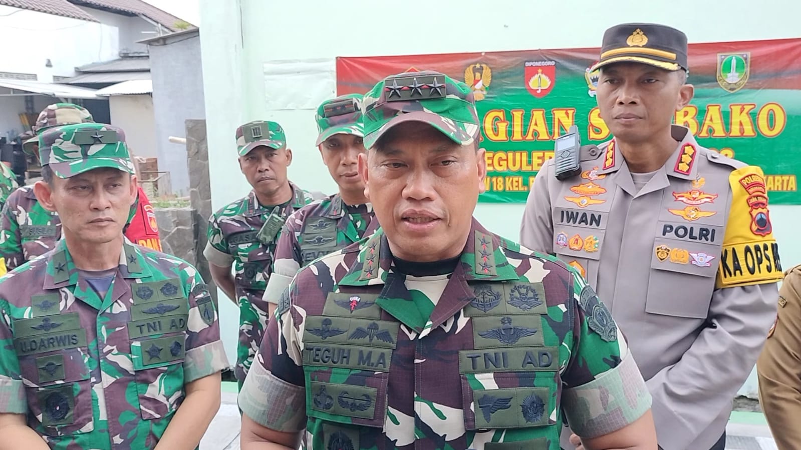 Kasdam IV/Diponegoro Brigjen TNI Ujang Darwis, M.D.A., dampingi Danpusterad Letjen TNI Teguh Muji Angkasa meninjau secara langsung lokasi yang menjadi sasaran fisik dan non-fisik program TMMD Reguler ke-116 Kodim 0735/Surakarta, tepatnya di Kp. Balong Baru, Kecamatan Banjarsari, Kota Surakarta. Senin (5/6/2023).