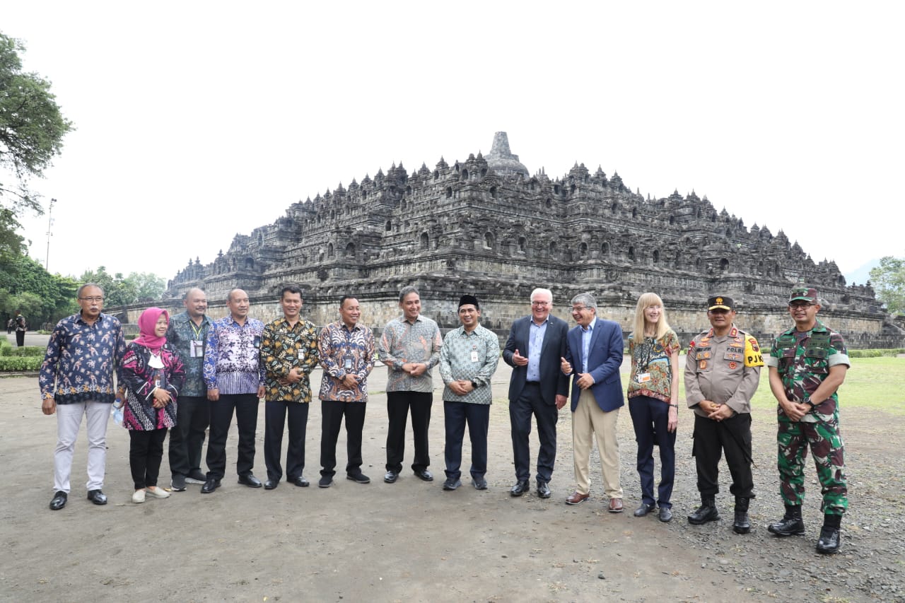 Agenda kunjungannya di kompleks Candi Borobudur ini salah satunya untuk meninjau kegiatan kolaborasi antara Indonesia dan Jerman di mana pemerintah Jerman telah memberikan bantuan peralatan untuk membuat mortar dan monitoring drainase Candi Borobudur.