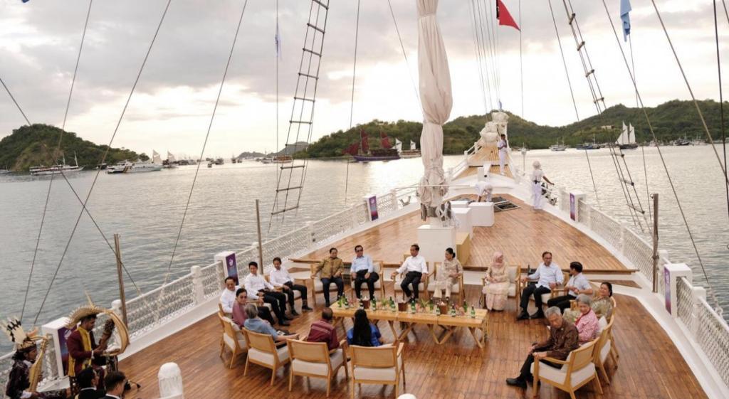 Selepas berbincag-bincang, para pemimpin beserta para pendampingnya menuju Marina Labuan Bajo untuk kemudian menaiki kapal pinisi Lako Di’a. Mereka akan berlayar untuk menikmati keindahan matahari terbenam di Labuan Bajo. (Arya78)