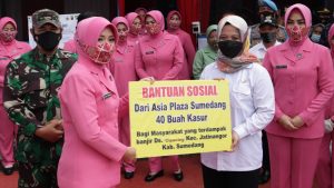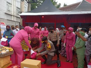 Ketua Bhayangkari Daerah Jawa Rarat Ny. Elly Suntana beserta rombongan melaksanakan Kegiatan Peninjauan Pos Pam Ops Lilin Lodaya – 2021 Dan Pemberian Bantuan Sembako, Kepada Petugas Pengamanan Jatinangor berlokasi Depan Klinik IPDN Desa Cibeusi Kecamatan Jatinangor Kabupaten Sumedang serta Pemberian bantuan kasur, selimut bagi korban banjir di Desa Cibeusi Kecamatan Jatinagor, Rabu (29/12/2021)