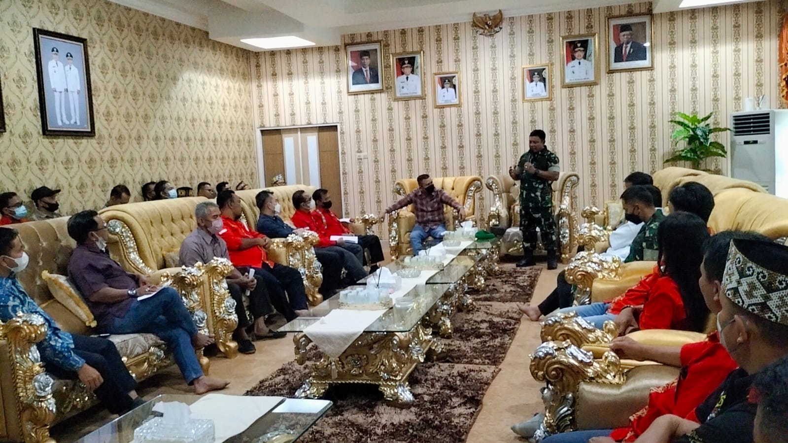 Ketua Dewan Adat Dayak ( DAD) Kabupaten Melawi Drs.Kluisen beserta sejumlah kepengurusan ormas Dayak Kabupaten Melawi menerima kedatangan Komandan Korem 121/ABW Brigjen TNI Dr Ronny, S.A.P., M.M di Pendopo rumah jabatan Bupati Melawi Jumat (29/4/22) Siang.
