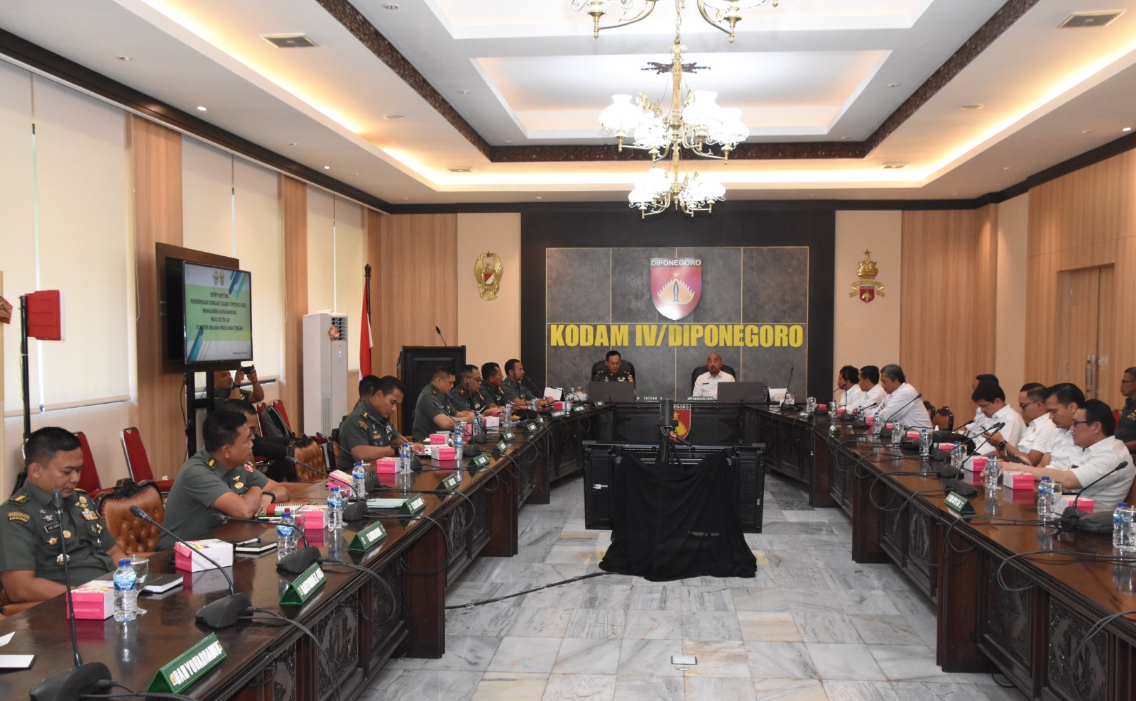 Pangdam IV/Diponegoro Mayjen TNI Widi Prasetijono yang diwakili oleh Kasdam IV/Diponegoro Brigjen TNI Ujang Darwis, M.D.A., memimpin Taklimat Awal Pemeriksaan Dengan Tujuan Tertentu (PDTT) tentang manajemen Alat Peralatan Pertahanan dan Keamanan (Alpalhankam) pada UO TNI AD di lingkungan Kodam IV/Diponegoro, di Ruang Bina Yudha, Kompleks Makodam, pada Senin (28/8/2023).
