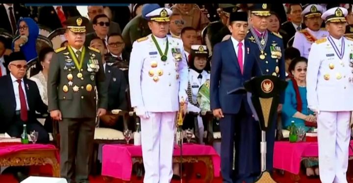 Sementara itu Presiden RI, Ir. Joko Widodo bertindak sebagai inspektur upacara, HUT ke-78 TNI.
