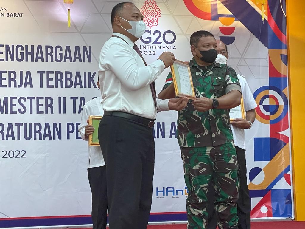 Kalimantan Barat – medialidikkrimsus-ri.net – Luar biasa dan sekali lagi Korem-121/Abw raih 2 penghargaan Peringkat I sekaligus dari Kakanwil Ditjen Perbendaharaan Provinsi Kabar. Prestasi itu adalah Peringkat I untuk kategori Satker dengan Pagu di atas 100 Milyar yaitu sebagai Satuan Kerja dengan Realisasi Anggaran Tertinggi Tingkat Wilayah Provinsi Kalbar Semester II Tahun Anggaran 2021 sebesar 99,98% dari total pagu.