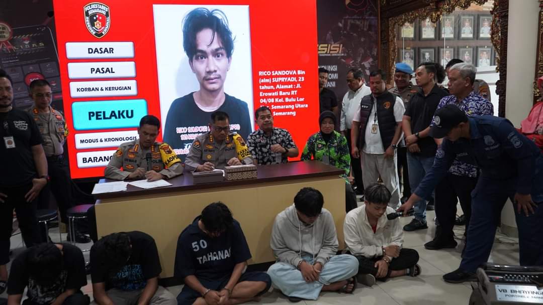 “Setelah kejadian Selasa dini hari itu, kami langsung bergerak penyelidikan dan perburuan. Hasil sementara, seperti yang kita lihat ada enam pelaku yang sudah kita amankan,” Ujar kapolrestabes Semarang