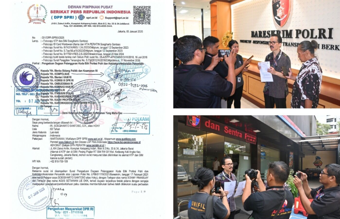 Surat Pengaduan dengan nomor: 001/DPP-SPRI/I/2025 ditujukan kepada Menko Polkam RI, Kompolnas, Menteri HAM RI, Komisi III DPR RI, Ombudsman RI, Komnas HAM RI, Kapolri, Irwasum Polri, Kabareskrim Polri, Kadiv Propam Polri dan Karowassidik Bareskrim Polri, perihal dugaan pelanggaran kode etik profesi Polri dan ketidakprofesionalan penyelidik dalam menangani 2 (dua) laporan Polisi yaitu No. LP/B/0117/II/2021/Bareskrim dan No. LP/5364/X/2018/PMJ/Dit Reskrimsus.