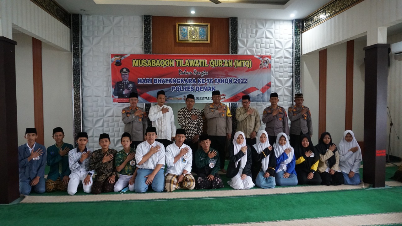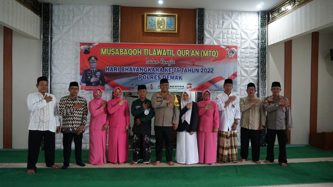 Demak – medialidikkrimsus-ri.net Kapolres Demak AKBP Budi Adhy Buono menutup lomba Musabaqoh Tilawatil Qur’an (MTQ) dalam rangka menyambut Hari Bhayangkara Ke-76, Kamis, 16/6/2022.