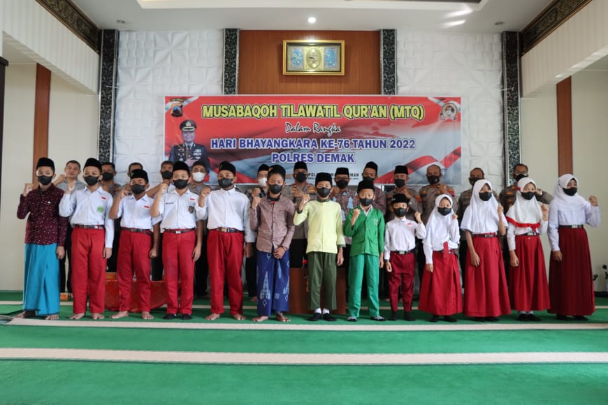 Demak-medialidikkrimsus-ri.net-Semarakkan Hari Bhayangkara ke-76, Polres Demak menggelar lomba Musabaqah Tilawatil Qur’an (MTQ) yang diikuti para siswa-siswi SD, SMP dan SMA sederajat di Kabupaten Demak.