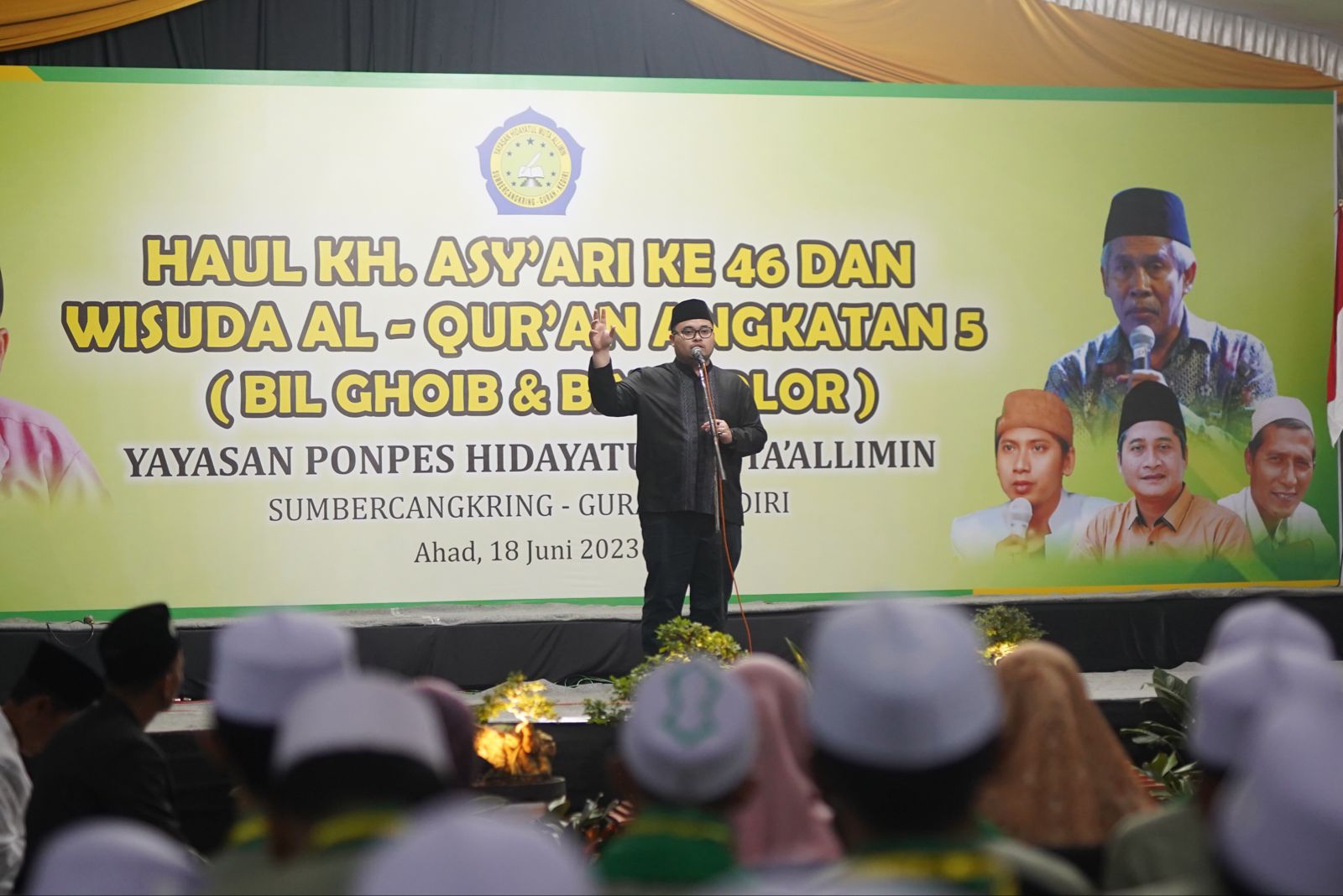 Hal ini disampaikannya saat menghadiri Haul KH. Asy’ari dan Wisuda Al-qur’an Pondok Pesantren Hidayatul Muta’allimin Sumbercangring Kecamatan Gurah Minggu (18/6/2023) malam.