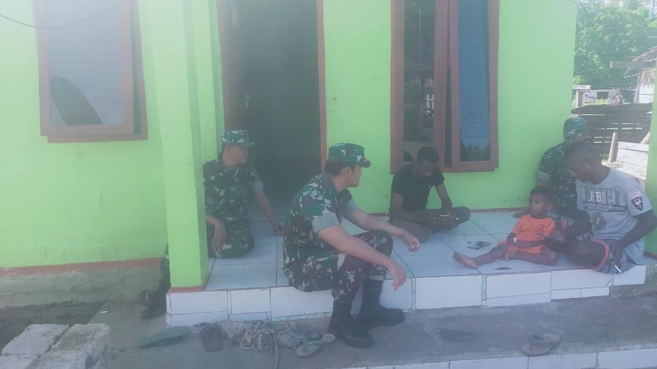 Sorong Papua Barat – Koramil persiapan Salawati Selatan Kodim 1802/Sorong. Serda Edo bersama 9 anggoto melaksanakan komunikasi sosial dengan keluarga Pak Pilipus warga Kampung Salawati Distrik Salawati Kabupaten Sorong. Selasa (01/02/2022).