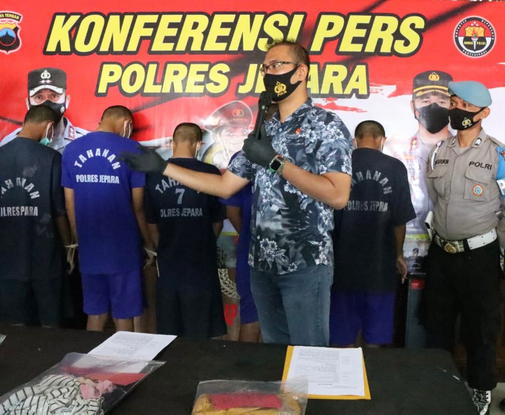 Kasat Reskrim AKP M Fachrur Rozi, SH., SIK., menjelaskan, “Kasus ini berhasil diungkap setelah salah satu keluarga korban diberitahu temannya, kemudian melaporkannya ke polisi dan tim resmob Polres Jepara dibantu keluarga korban mencari para tersangka dan akhirnya para tersangka berhasil dibawa ke Polres Jepara untuk diproses”, jelas Kasat Reskrim.