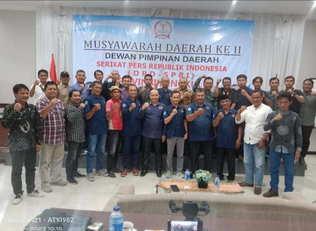 Bengkulu – Dewan Pimpinan Daerah Serikat Pers Republik Indonesia (DPD SPRI) Bengkulu gelar Musyawarah Daerah (Musda) II DPD SPRI 2023, di Aula Hotel Nala Sea Side, Senin (25/06/2023).