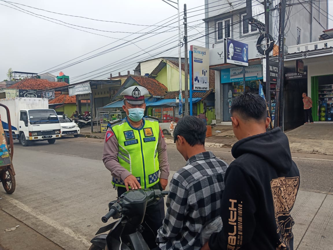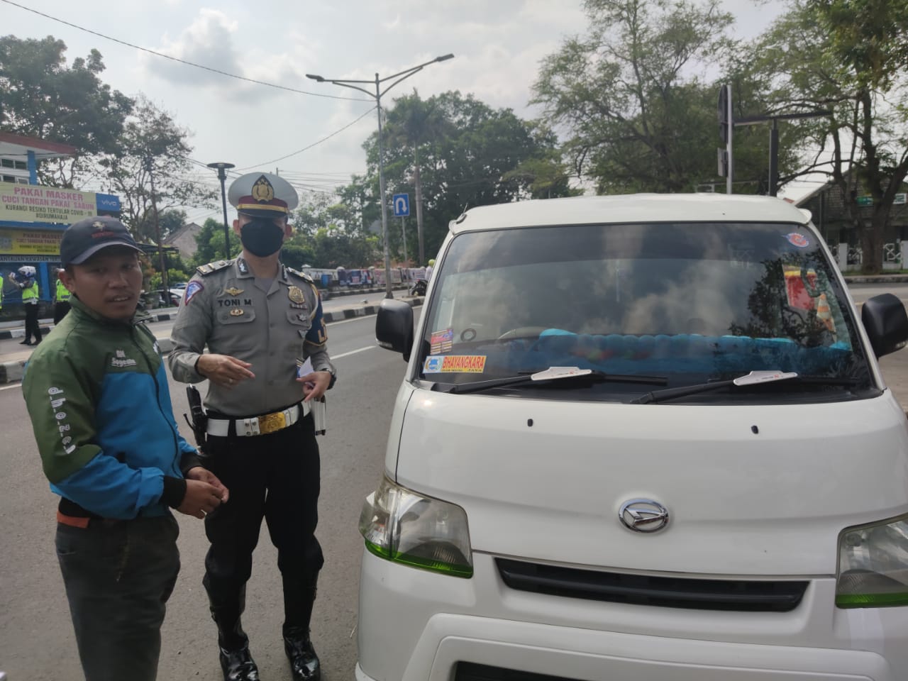 Puluhan Pengendara dalam pelaksanaan Ops Patuh, Kali ini petugas Satlantas tidak memberikan tilang, tetapi hanya memberikan surat teguran serta pemasangan stiker di kendaraan. Kamis (23/6/2022).