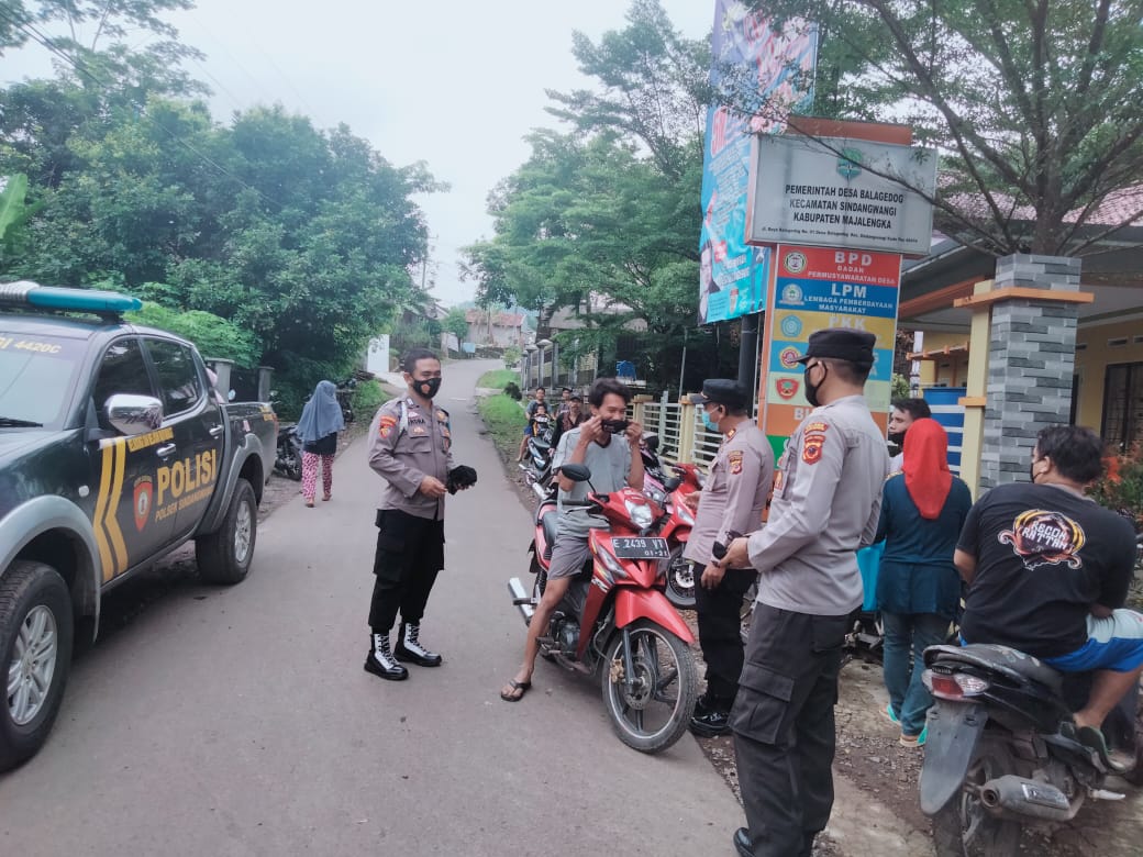 Jajaran Poksek Sindangwangi Polres Majalengka diterjunkan untuk memberikan masker gratis kepada warga. Pemberian masker ini dilaksanakan dalam kegiatan operasi yustisi penegakan disiplin protokol kesehatan yang dipimpin langsung oleh Kapolsek Sindangwangi IPTU Adam R Hidayat.