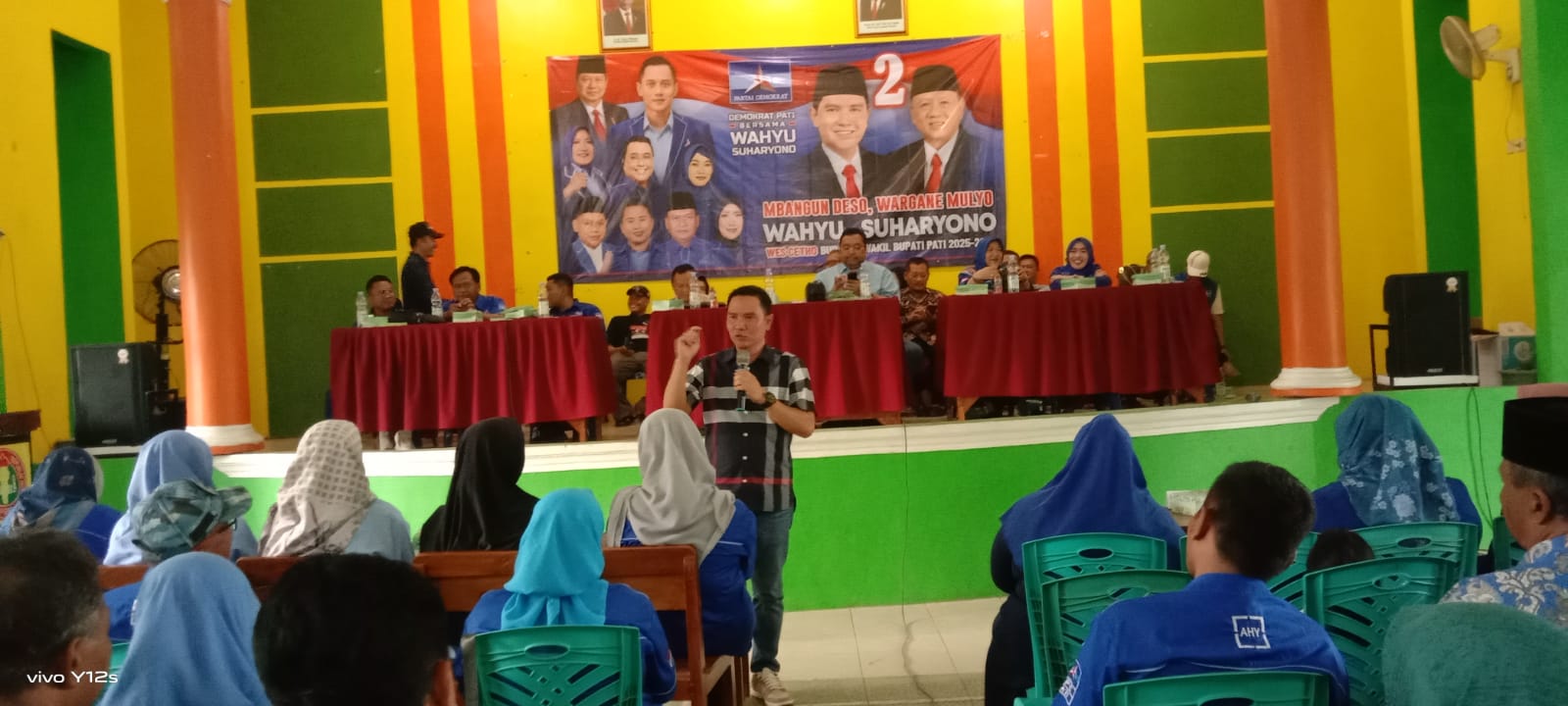 Pati – Partai Demokrat Dapil 5 meliputi kecamatan Sukolilo, Kayen , Gabus, Tambakromo, setelah Penetapan KPU Calon Wahyu – Suharyono dengan nomor Urut 2, menggelar sosialisasi dan konsolidasi untuk pemenangan pasangan calon Bupati dan Wakil Bupati Pati Wahyu Indriyanto – Suharyono Di gedung PGRI Kecamatan Sukolilo.