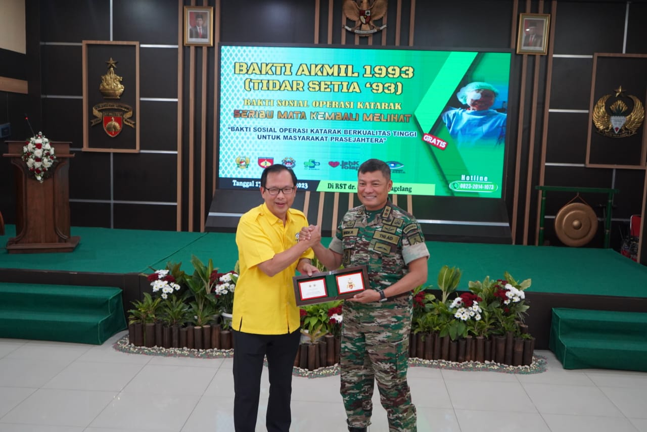 Pangdam IV/Diponegoro Mayjen TNI Widi Prasetijono beserta Ketua Persit KCK Daerah IV/Diponegoro Ibu Novita Widi Prasetijono menghadiri kegiatan Bakti Sosial Operasi Katarak dalam rangka Reuni Alumni Akmil 1993 (TIDAR SETIA ’93) di Rumkit Tk. II dr. Soedjono, Jum’at (18/8/2023).