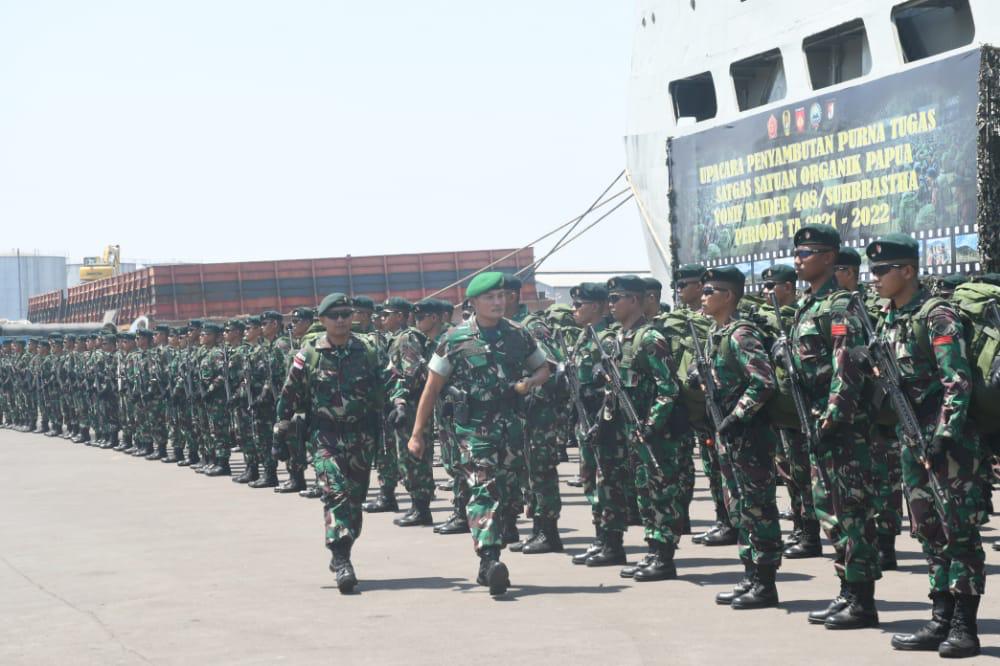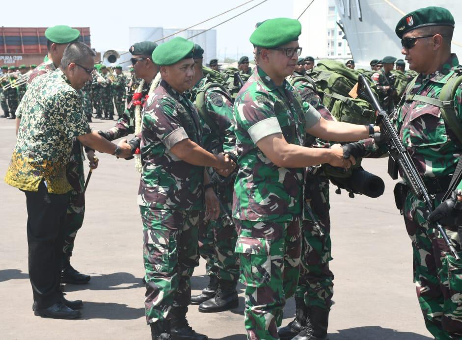 Pangdam IV/Diponegoro Mayjen TNI Widi Prasetijono memimpin upacara penerimaan Satgas Yonif Raider 408/SBH yang baru saja kembali dari tugas operasi Pamtas Mobile di wilayah Papua. Upacara penyambutan tersebut dilaksanakan di dermaga Tanjung Emas Semarang, Rabu (28/9/2022).