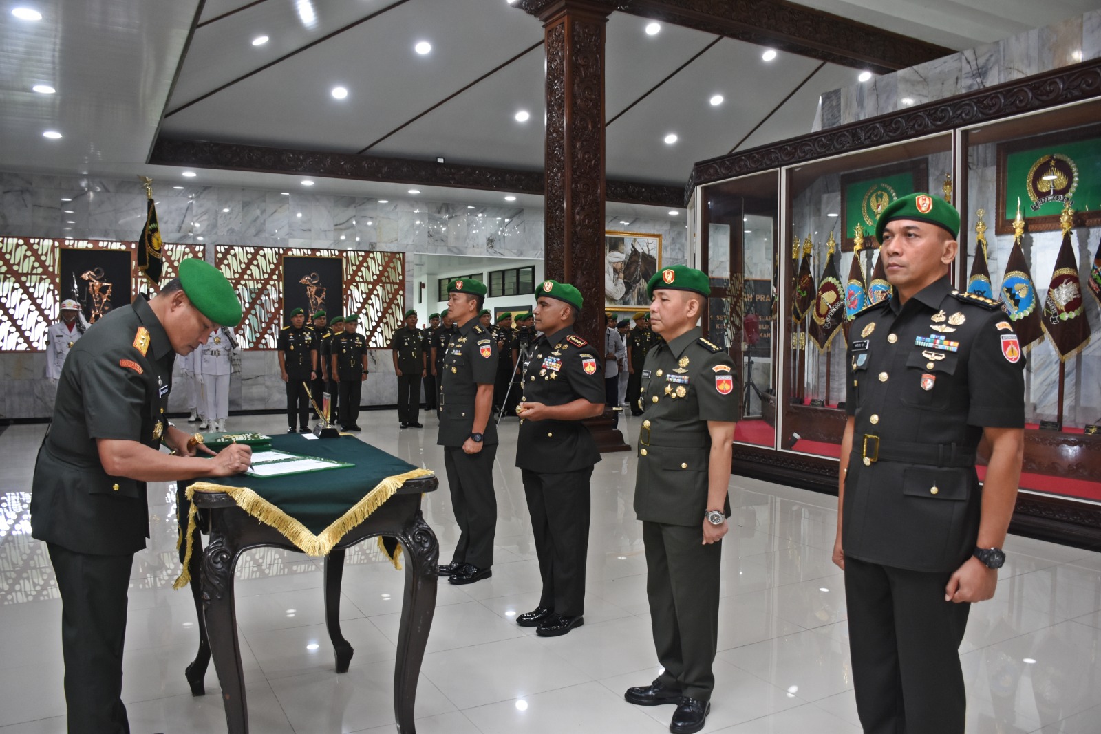 Pangdam IV/Diponegoro Mayjen TNI Widi Prasetijono pimpin Sertijab Danrindam dan Aslog Kasdam IV/Diponegoro serta penyerahan jabatan Dandim 0733/Kota Semarang di Serambi Kehormatan, Kompleks Makodam. Senin (27/02/2023).