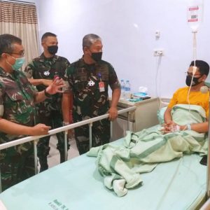 Dua personel yang dirawat di dua ruangan berbeda satu persatu dikunjungi, dan memberikan motivasi dan semangat sekaligus bersilahturahmi dengan keluarga para personel yang sakit.