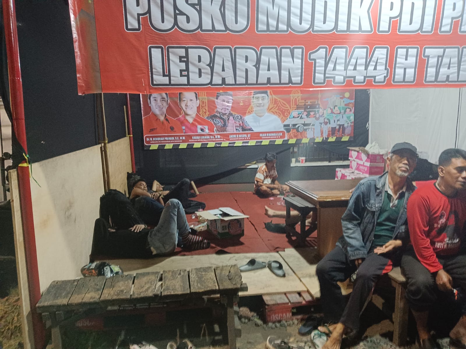 Meskipun sederhana tapi posko mudik pdi perjuangan dan ormas semut kalibanteng kulon mencoba memberikan pelayanan yang prima untuk pemudik yang mau istirahat.