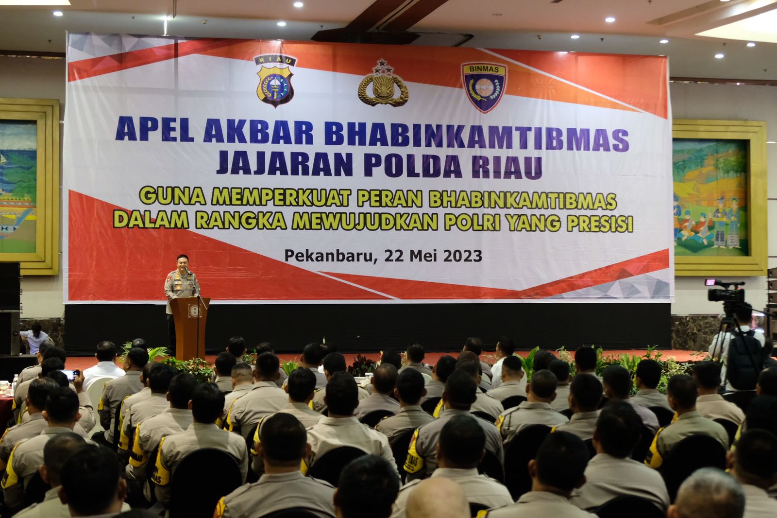 Acara yang turut dihadiri Wakapolda Riau, Brigjen Pol Kasihan Rahmadi serta para PJU Polda Riau tersebut diikuti seluruh personil Bhabinkamtibmas dari seluruh jajaran Polda Riau sebanyak 650 orang.
