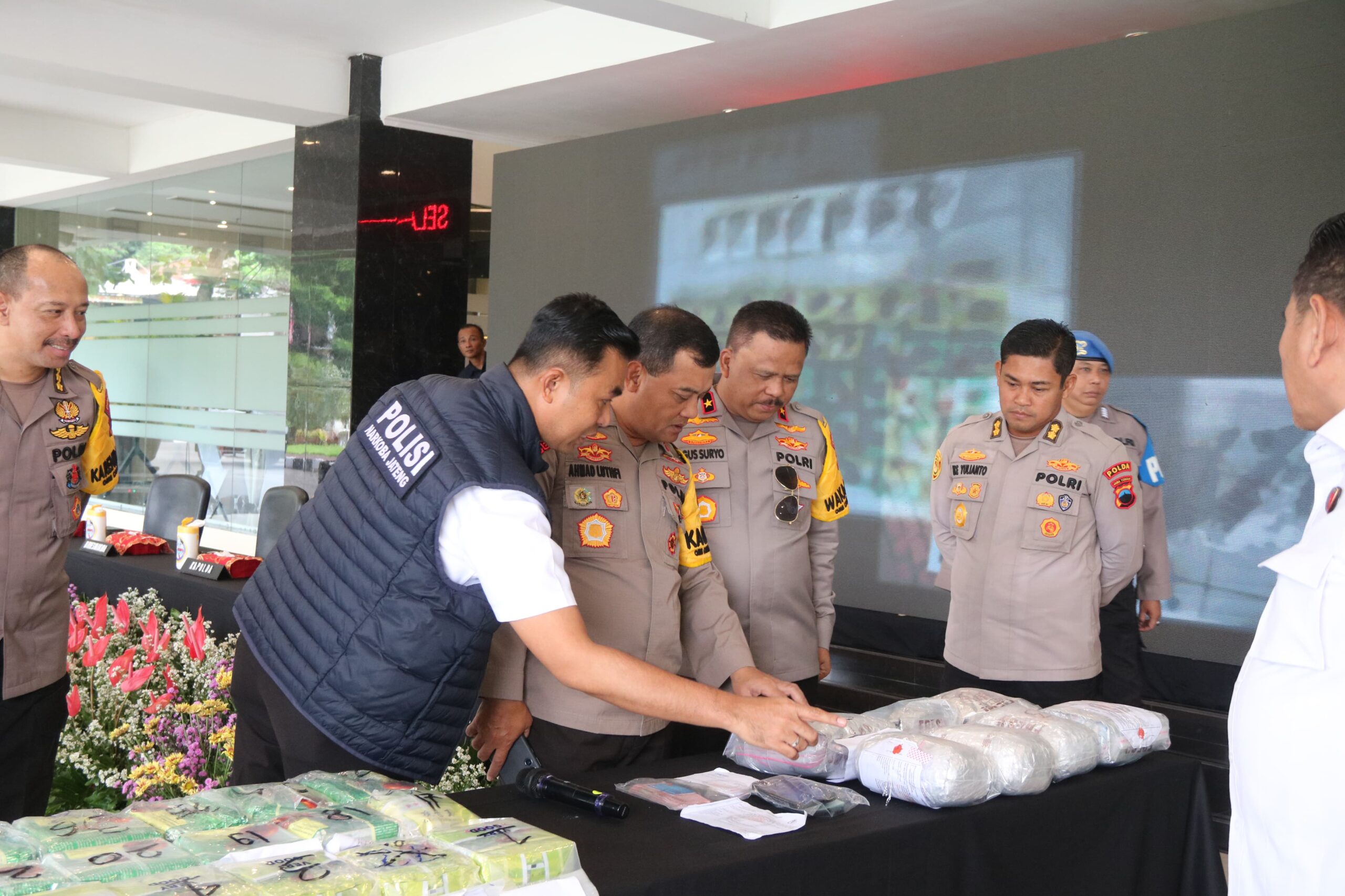 Kapolda Jateng, Irjen Pol Ahmad Luthfi saat memimpin konferensi pers menegaskan para tersangka merupakan jaringan pengedar Narkoba lintas Jawa dan Sumatra, Para tersangka merupakan pengungkapan dari dua kasus yang berbeda namun saling terkait.
