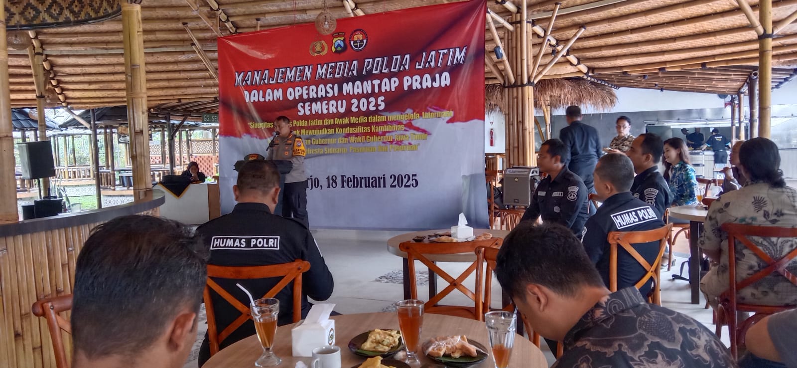 Acara yang bertajuk “Manajemen Media Polda Jatim Dalam Operasi Mantap Praja Semeru 2025” yang bertemakan “Sinergitas Humas Polda Jatim dan Awak Media Dalam Mengelola Informasi Untuk Mewujudkan Kondusifitas Kamtibmas Tahap Pelantikan Gubernur dan Wakil Gubernur Jawa Timur, di Wilayah Polresta Sidoarjo, Pasuruan dan Pasuruan Kota.