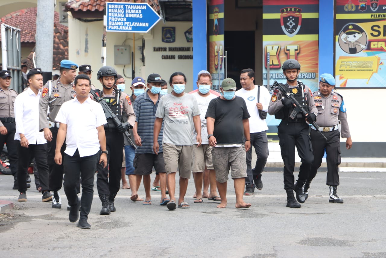 Para pelaku yang berhasil diamankan yakni St (41) warga Desa Tegowanu Kulon Kecamatan Tegowanu Grobogan, Sd (53) warga Kelurahan Brambang Kecamatan Karangawen Kabupaten Demak, Sn (61) warga Desa Jumo Kecamatan Kedungjati Grobogan, Sp (40) warga Desa Tambakan Kecamatan Gubug Grobogan, Sb (47) warga Desa Gaji Kecamatan Tegowanu Grobogan, Dt (53) warga Desa Kunjeng Kecamatan Gubug Grobogan, Sj (44) warga Desa Gubug Kecamatan Gubug Grobogan, Ar (44) warga Desa Tegowanu Kulon Kecamatan Tegowanu Grobogan, dan My (43) warga Desa Cangkring Kecamatan Tegowanu Grobogan.
