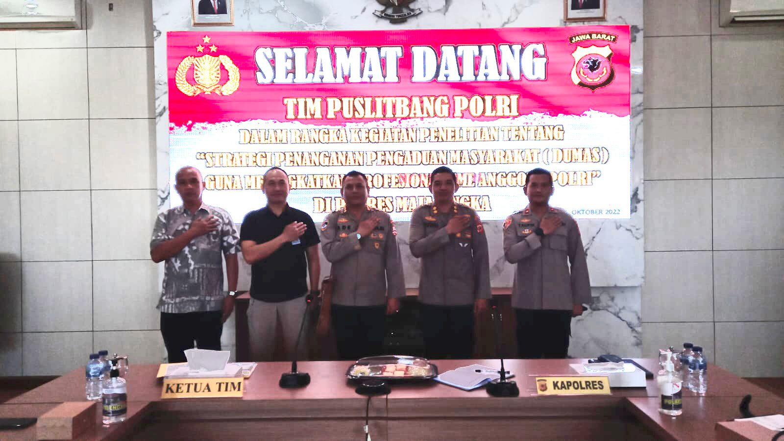 Majalengka – medialidikkrimsus-ri.net – Kedatangan Tim Puslitbang Mabes Polri disambut langsung oleh Kapolres Majalengka di ruang kerja Kapolres, AKBP Edwin Affandi S.I.K., M.H. Selasa, (25/10/22).