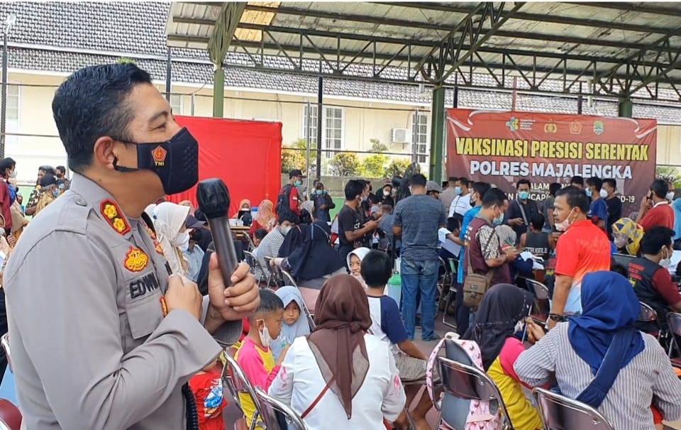 Majalengka – medialidikkrimsus-ri.net – Kapolres Majalengka AKBP Edwin Affandi memimpin pelaksanaan Kegiatan Vaksinasi Presisi Serentak Polres Majalengka Dalam Rangka Percepatan Pencapaian Vaksinasi Covid 19 yang di gelar di Pendopo Kabupaten Majalengka, Minggu (13/3/2022).