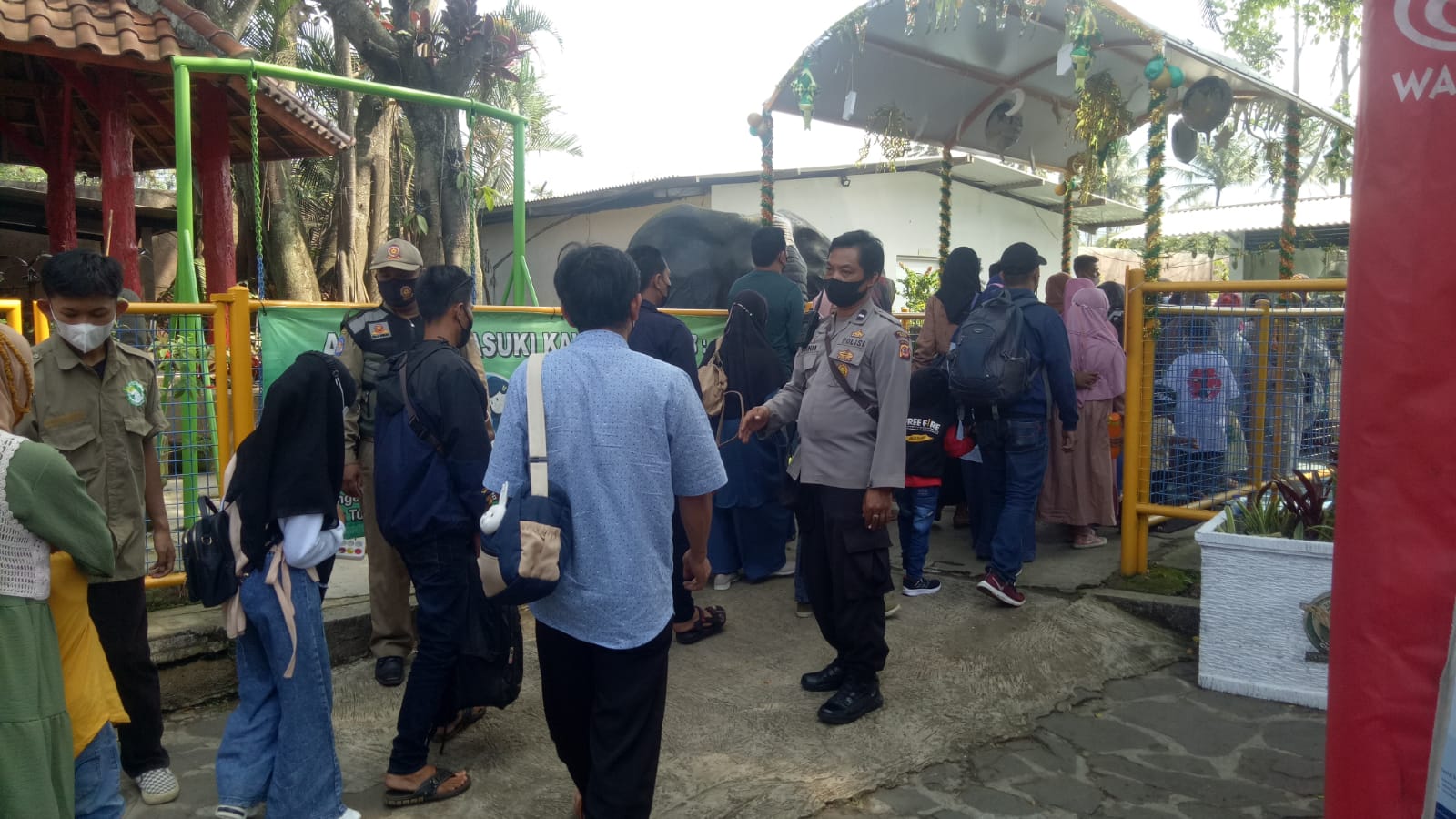 Bhabinkamtibmas Polsek Kadungora Aipda Kurnia memantau sekaligus memberikan pengamanan terhadap objek wisata taman satwa Cikembulan yang berada di wilayah Kecamatan Kadungora Kabupaten Garut, Minggu, (15/5/2022).