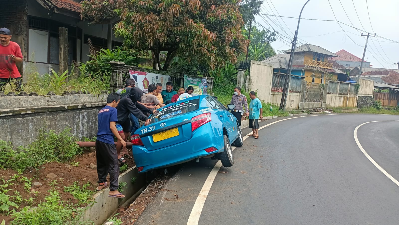 TASIKMALAYA KOTA – medialidikkrimsus-ri.net – Kecelakaan tunggal kembali terjadi, sebuah Taksi Budiman terperosok parit di Jalan Raya Syeh Abdul Muhyi Kelurahan Gununggede Kecamatan Kawalu Kota Tasikmalaya, Sabtu (26/03/2022) siang.