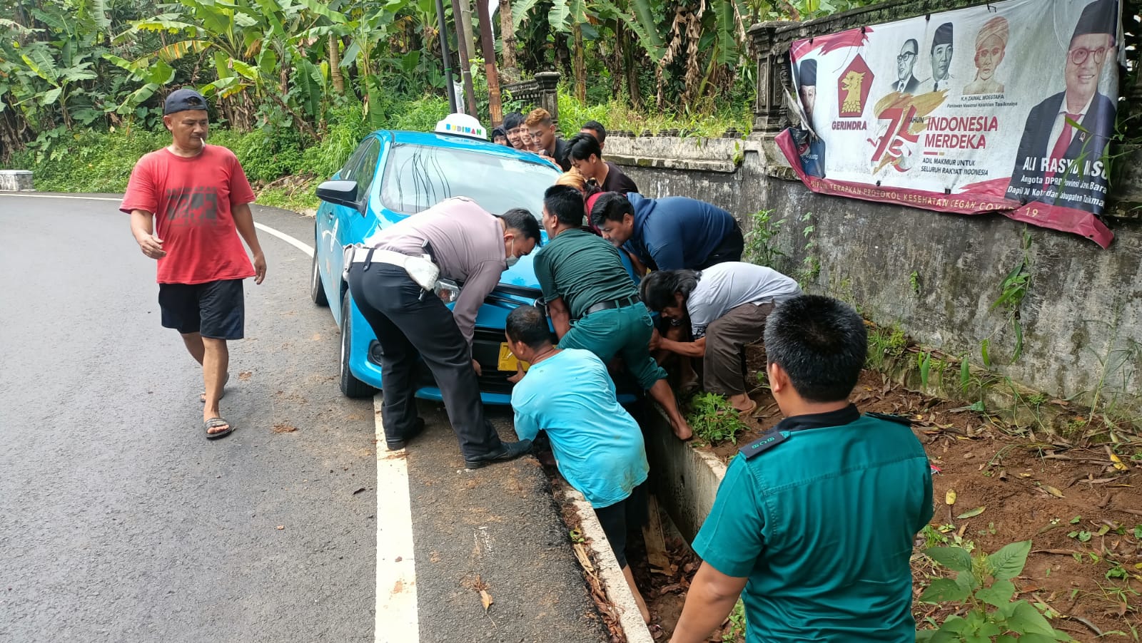 Dijelaskan Kanit Lantas bahwa Taksi Budiman No Pol Z-1924-KE yang di kendarai oleh Asep Heri (49) warga Cihaurbeuti Ciamis, hilang kendali dan terperosok ke parit. Kemudian Personil Lalu lintas Polsek Kawalu dibantu warga bergotong-royong evakuasi kendaraan tersebut agar tidak mengganggu pengguna jalan lainnya.