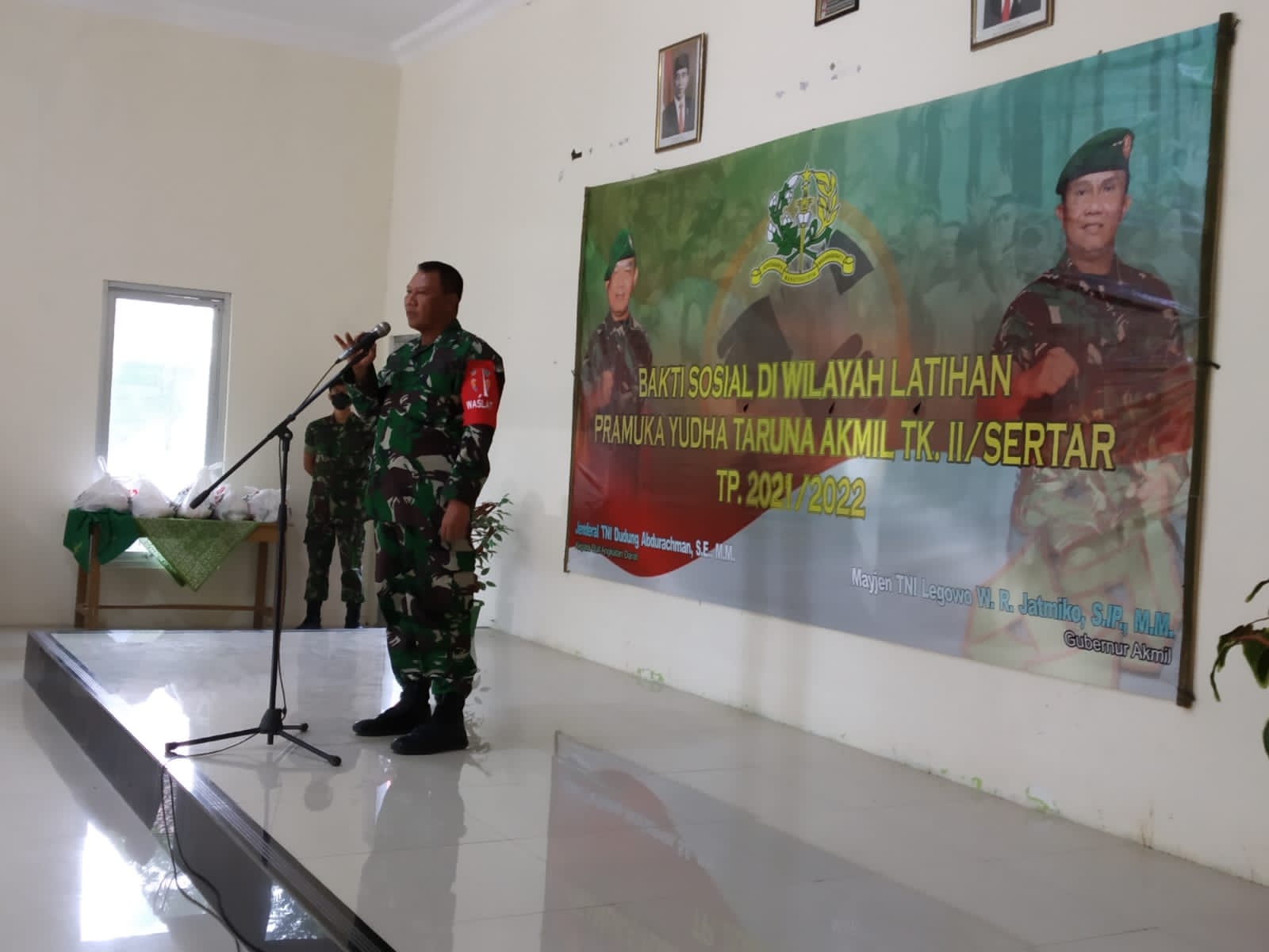 KENDAL – Medialidikrimsus-ri.net – Kegiatan Baksos dalam rangka latihan Yudha Pramuka Akmil tingkat II/ Sertar TP 2021.2022 di wilayah Kecamatan Limbangan Kabupaten Kendal bertempat di balai Desa Limbangan Kecamatan Limbangan telah dilaksanakan penyerahan secara simbolis Bhaksos dalam rangka latihan Yudha Pramuka Akmil tingkat II Sertar TP 2021.2022. Hari Sabtu, 26/03/2022.