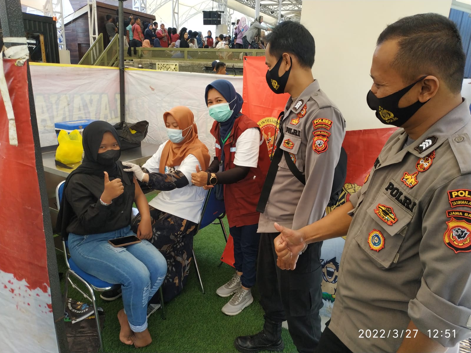 Tasikmalaya Kota – medialidikkrimsus-ri.net – Personil Polsek Pagerageung Polres Tasikmalaya Kota memantau pelaksanaan Gebyar Vaksin Presisi di Lokasi Wisata Alam Parung Kecamatan Pagerageung Kabupaten Tasikmalaya, Minggu (27/03/2022).