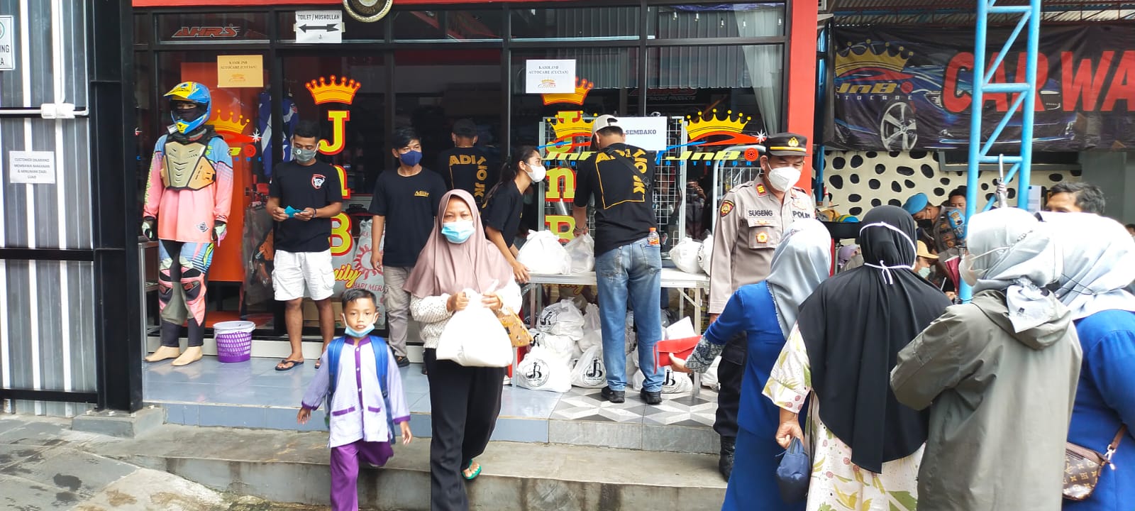 “Setelah selesai melaksanakan rangkaian vaksinasi, peserta diberikan bingkisan sembako oleh managemen JnB,” ujar Kapolsek Sukorejo