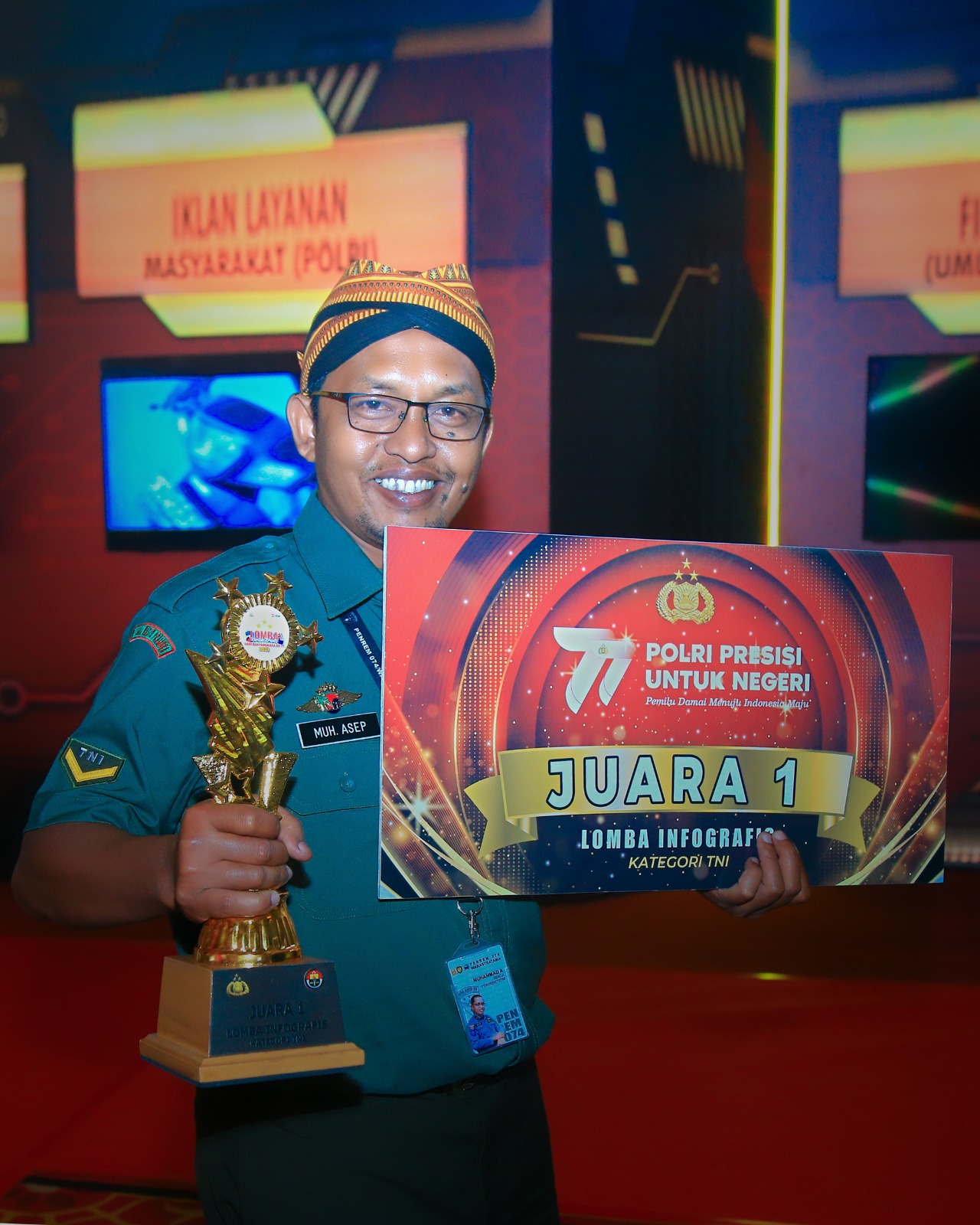 Prajurit terbaik Kodam IV/Diponegoro Serda Muhammad Asep dari Korem 074/Warastratama, meraih prestasi gemilang yaitu memperoleh juara pertama dalam Lomba Infografis yang diselenggarakan dalam rangka peringatan Hari Bhayangkara ke-77. Penghargaan ini secara langsung diserahkan oleh Kapolri Jenderal Listyo Sigit Prabowo pada acara “Awarding Day” Apresiasi Kreasi Polri Presisi yang berlangsung di Balai Samudera, Jakarta pada Rabu (12/7/2023).