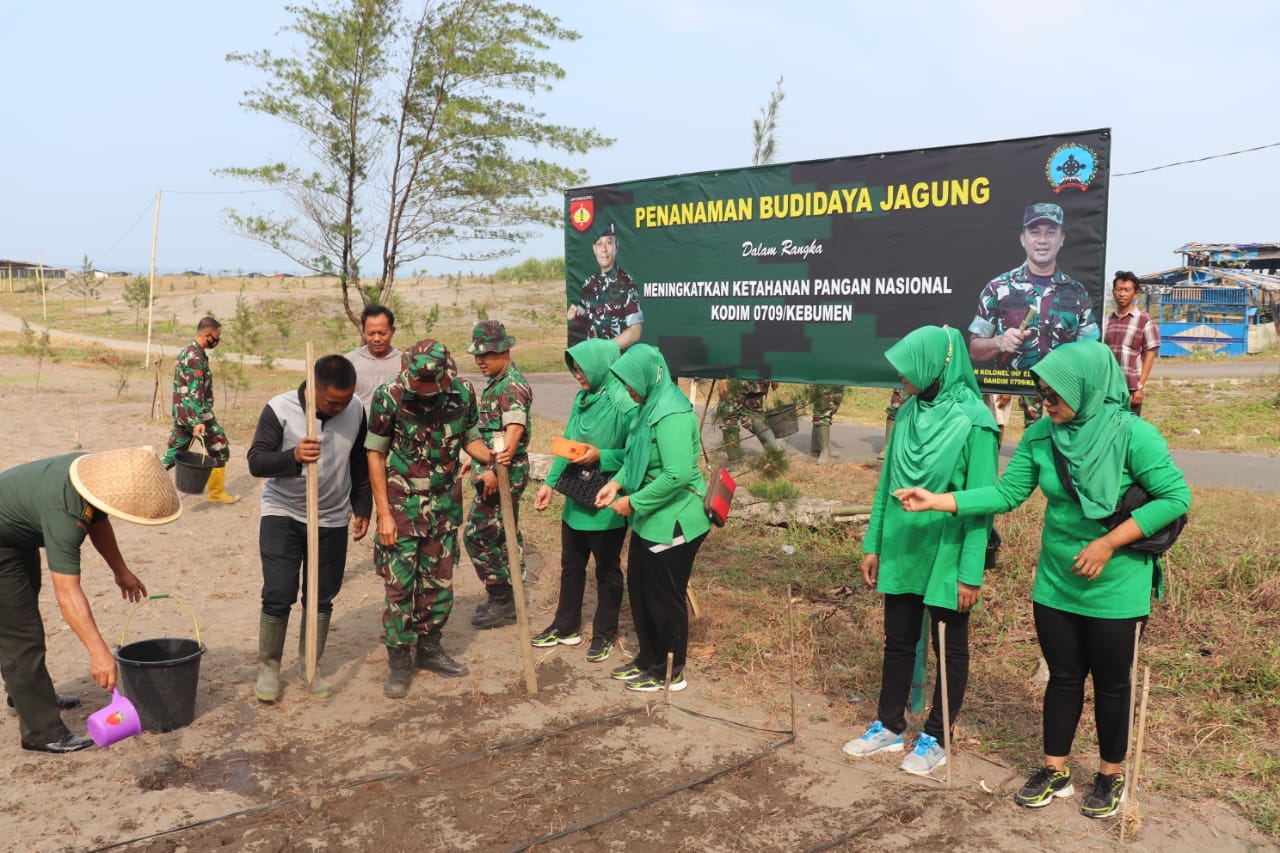 ‘’Penanaman dilakukan atas perintah KASAD Jenderal TNI Dudung Abdurahman. Anggota TNI diminta menanam jagung di lahan milik TNI AD. Nanti hasilnya akan diberikan kepada masyarakat, khususnya warga Kebumen,’’ kata Dandim.