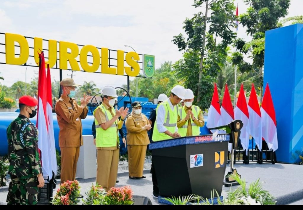 Presiden Joko Widodo meresmikan sistem penyediaan air minum (SPAM) regional Durolis (Dumai-Rokan Hilir-Bengkalis) pada Kamis, 5 Januari 2023. Dalam sambutannya, Presiden Jokowi menyampaikan bahwa SPAM yang terletak di Kabupaten Rokan Hilir ini nantinya dapat menyuplai air minum dengan kualitas baik ke tiga kabupaten/kota di Riau.