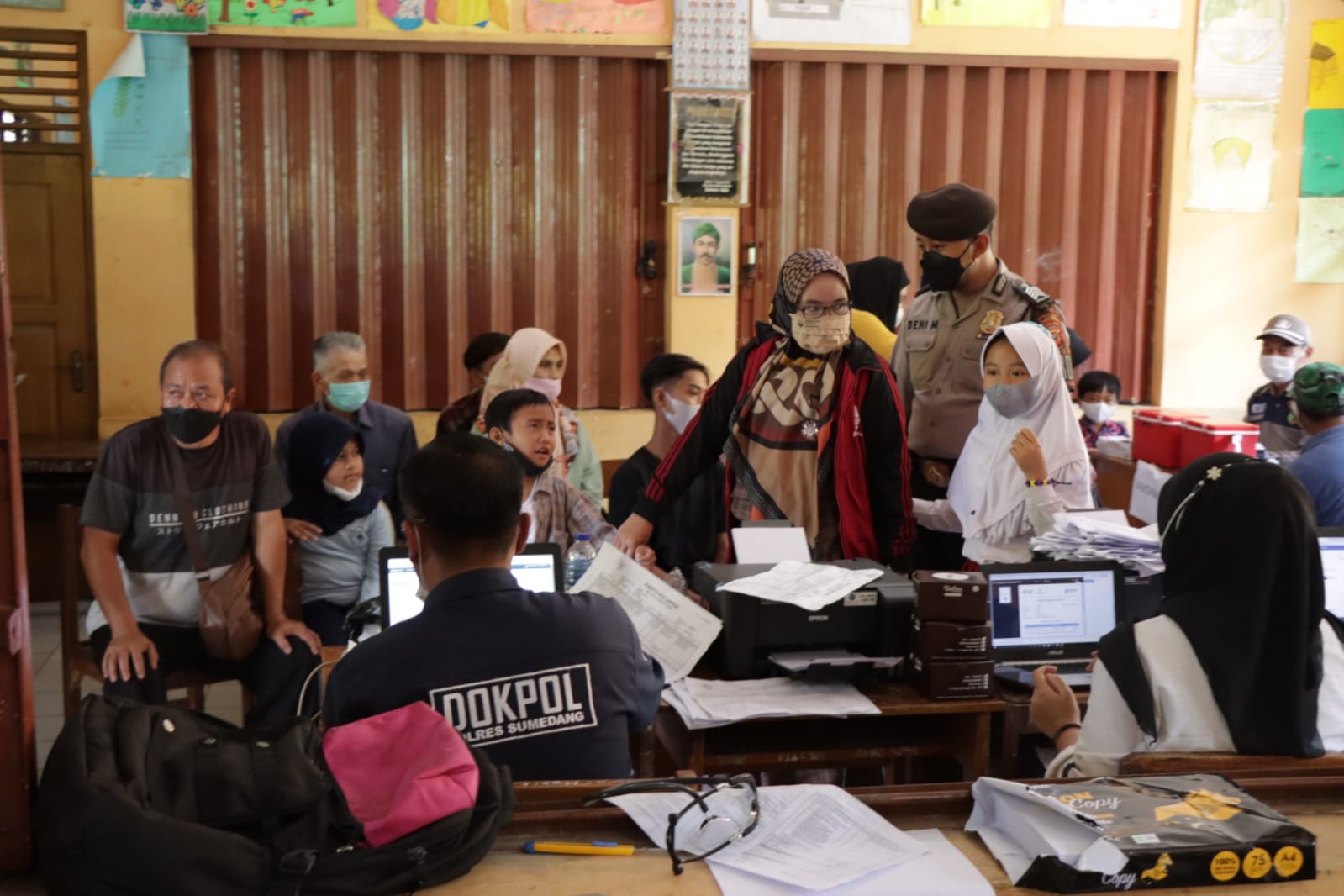 Sumedang – medialidikkrimsus-ri.net – Bertempat di madrasah ibtidaiyah Raudlatul Muta’alimin, Desa Cilayung, Jatinangor Sumedang. Ratusan siswa madrasah dan warga sekitar sekolah tersebut menerima manfaat vaksinasi Covid-19 Dosis 1, 2 dan 3. Selasa (8/3/2022).