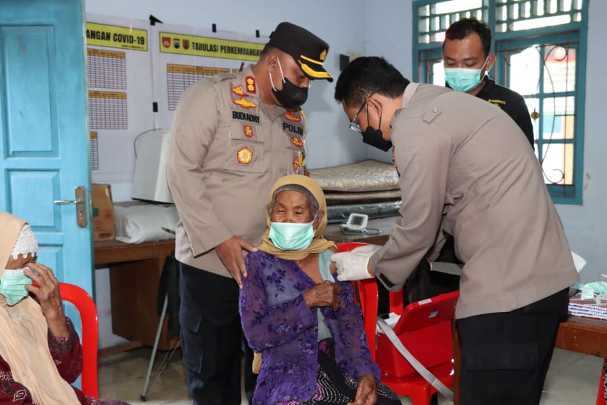 “Alhamdulillah hari ini, kita sukses melaksanakan vaksinasi Covid-19 dosis pertama, kedua maupun booster kepada Lansia dan bhakti sosial di Balai Desa Sumberejo,” kata AKBP Budi.