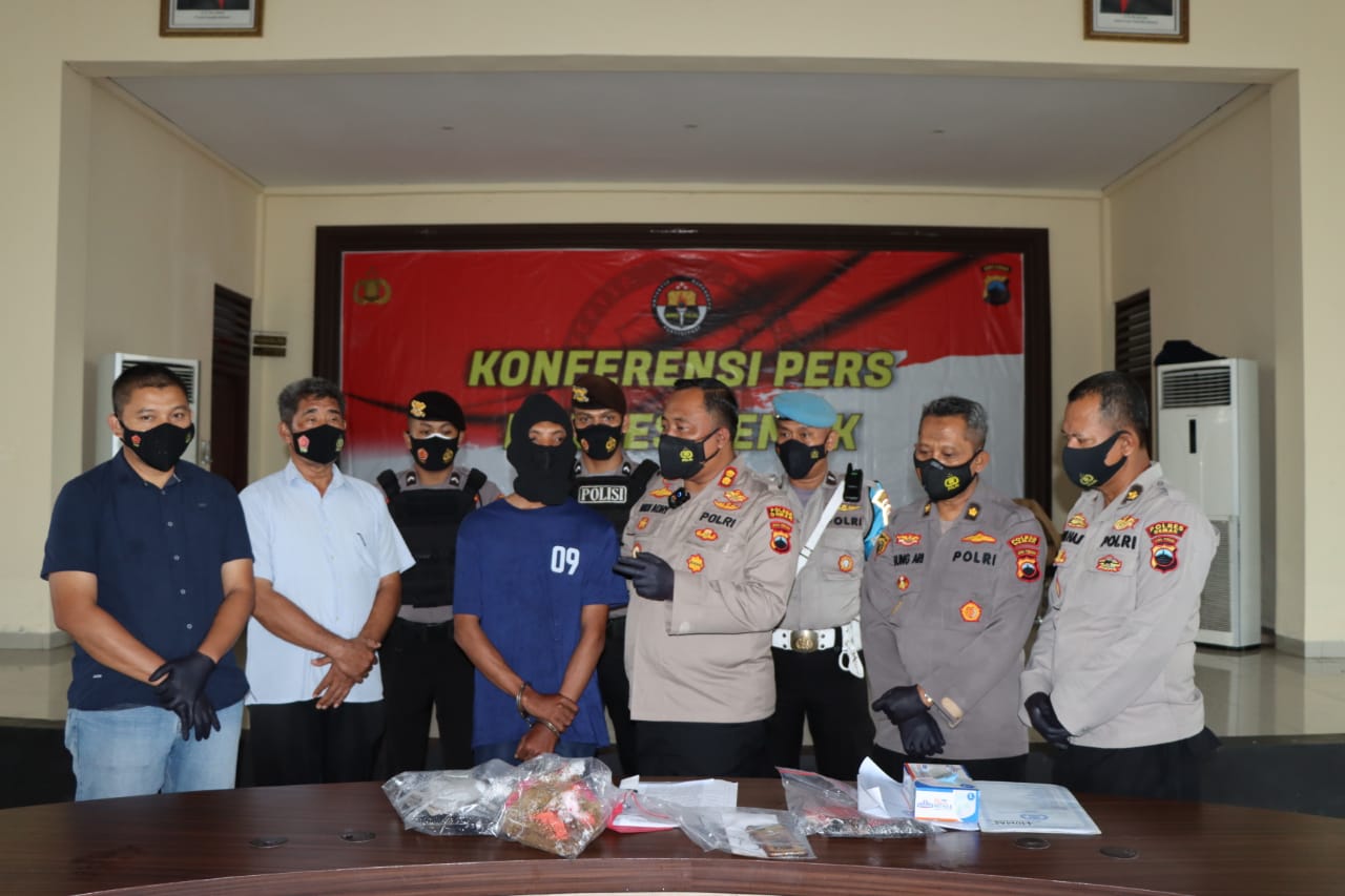 “Tidak kurang dari 12 jam, kita berhasil menangkap pelakunya dan kini masih dalam pemeriksaan,” kata Kapolres Demak AKBP Budi Adhy Buono saat konferensi pers di Mapolres Demak, Kamis (26/5/2022).
