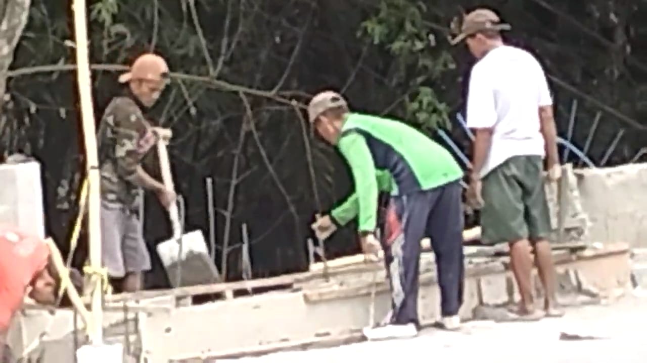 Tak hanya itu, di lokasi proyek ditemukan hal yang aneh pada pekerjaan pengecoran pagar atau pengaman sayap jembatan, yaitu terlihat pekerja proyek sedang menuangkan bahan cor dari mixer, setelah itu pekerja tersebut baru menancapkan besi besi ke dalam bahan cor yang masih dalam kondisi basah, sehingga dipastikan besi besi tersebut tanpa diikat terlebih dahulu, bagaikan orang yang sedang menanam batang ketela pohon.
