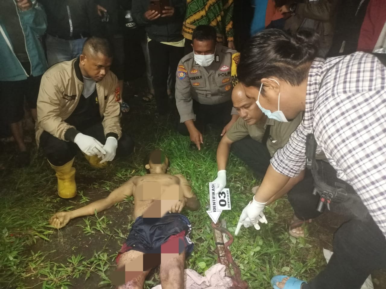 Mendengar teriakan tersebut Istri Korban meminta tolong kepada tetanganya untuk melihat keberadaan suaminya, setelah berjalan +- 500 meter dari rumah, kemudian istri korban menemukan suaminya dan melihat sudah dalam keadaan tertelungkup tak bernyawa ( Meninggal Dunia ).