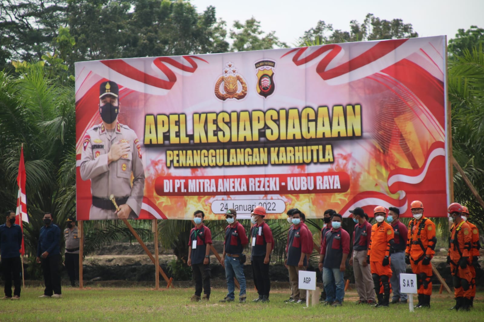 LIDIK KRIMSUS RI – NET. KUBU RAYA, KALBAR – Polda Kalimantan Barat menggelar Apel Besar Kesiapan Penanggulangan Kebakaran hutan dan lahan (Karhutla) di lapangan PT. Mitra Aneka Rezeki ( MAR) Kecamatan Rasau Jaya, Kabupaten Kubu Raya, Senin (24/1).