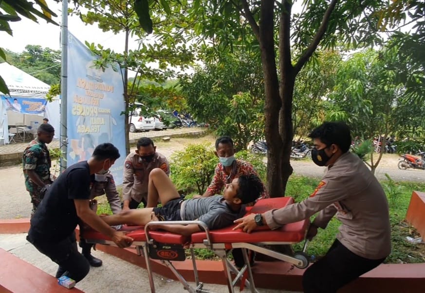 Tanpa membuang waktu, Kapolsek Kasokandel IPTU Wahid Rodise selaku Kapospam Ops Ketupat Lodaya 2022 beserta Anggota dan Tim Medis yang sedang melaksanakan Pengamanan Obyek Wisata Jember Waterpark langsung menolong korban yang tengah membutuhkan bantuan dilokasi Jembar water park.