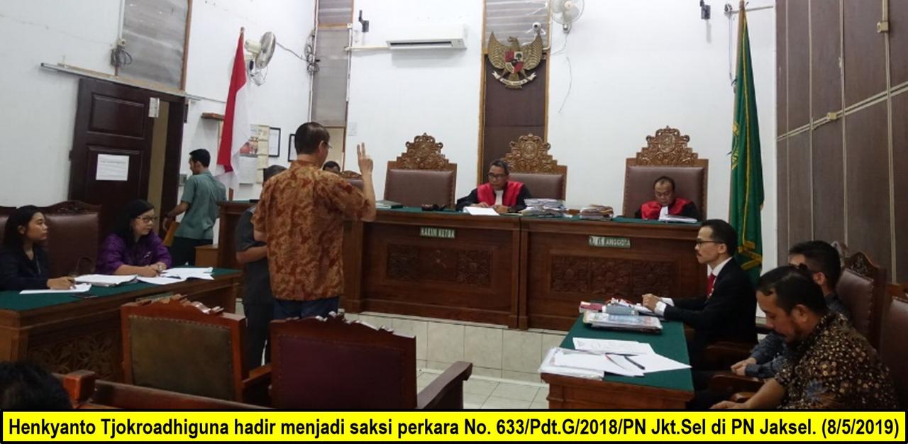 Menanggapi saran Hakim Panji Surono tersebut, Hoky telah menindaklanjutinya dengan membuat laporan polisi di Polda Metro Jaya terhadap para saksi yang dianggapnya memberikan keterangan palsu di bawah sumpah pada sidang perkara No. 633/Pdt.G/2018/PN Jkt.Sel. di PN Jaksel.