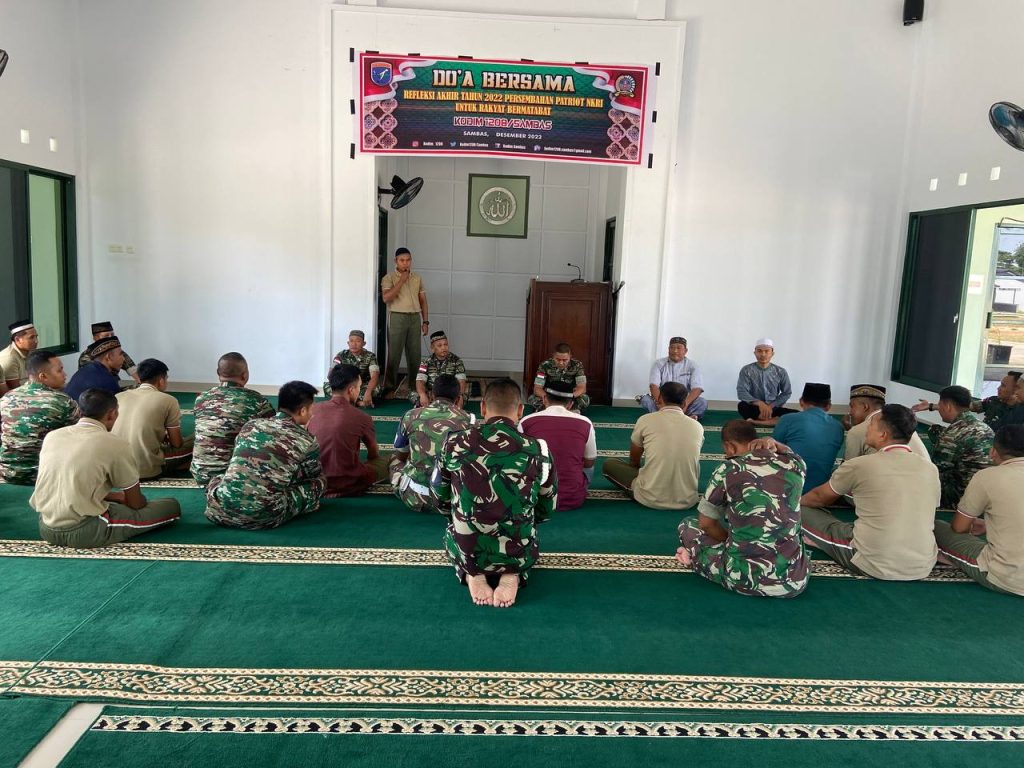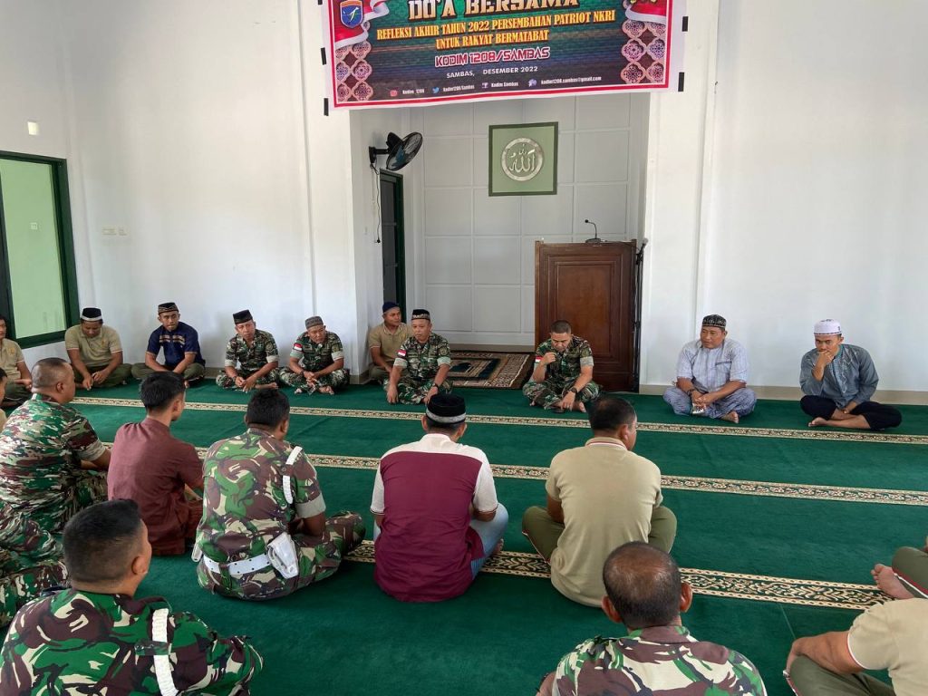 Sambas Medialidikkrimsus.ri-net Kodim 1208/Sambas menggelar Doa bersama dalam rangka menyongsong Tahun Baru 2023. Bagi yang beragama Islam Doa bersama dilaksanakan di Masjid Mujahidin Kodim 1208/Sambas Jalan Tabrani, Desa Lumbang, Kec. Sambas, Kab. Sambas, Jumat (30-12-22).