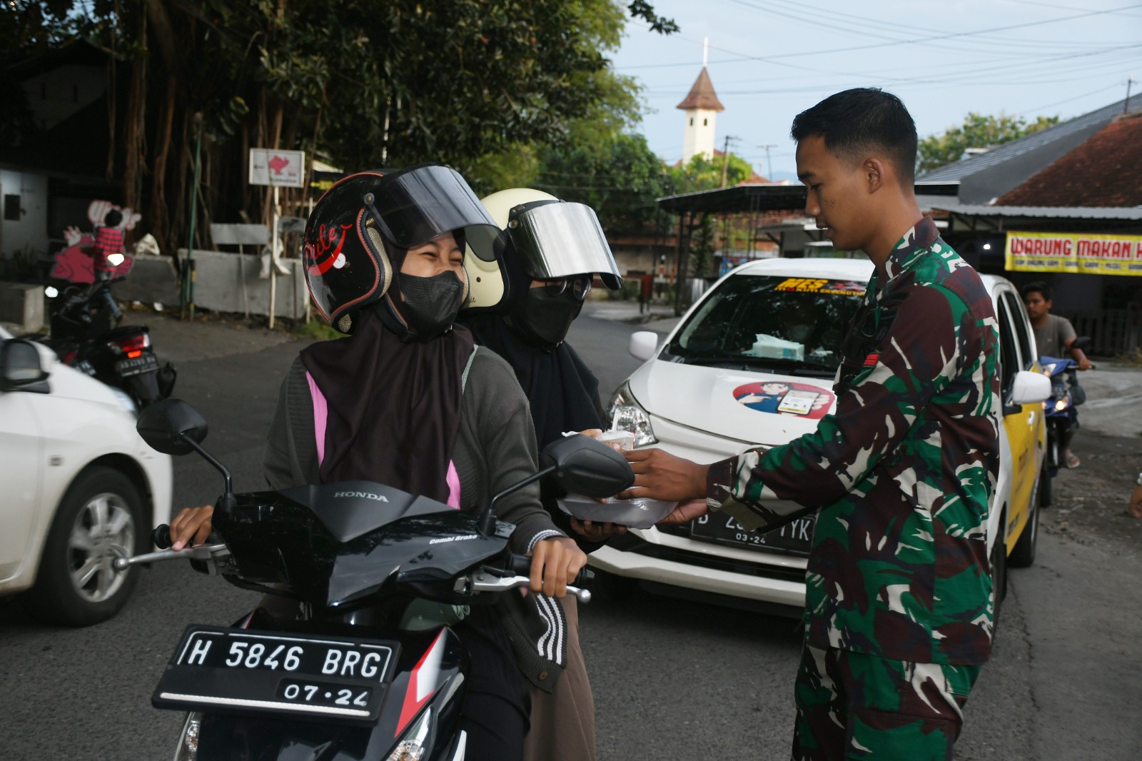 Takjil Gratis Dibagikan Prajurit Kodam IV/Dip Kepada Masyarakat Yang Melintas Di Jl. Kusumawardani, Semarang